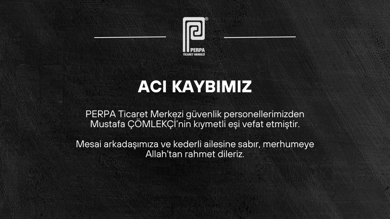 DetayPERPA Ticaret Merkezi güvenlik personellerimizden Mustafa ÇÖMLEKÇİ’nin kıymetli eşi hakkın rahmetine kavuşmuştur.