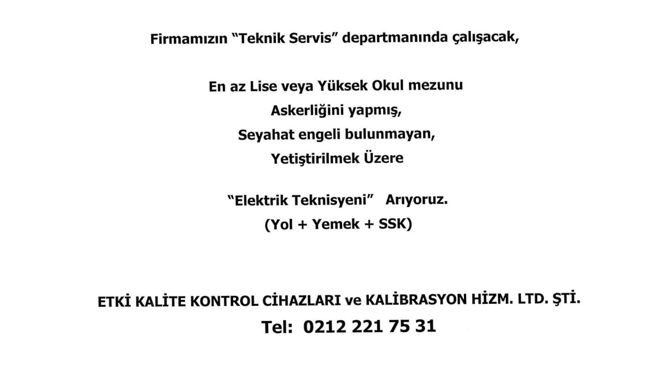 DetayElektronik güvenlik sistemlerinde montaj, bakım, arıza/servis, programlama ve kullanıcı eğitimi konularına hâkim Saha kurulumlarında kablolama, devreye alma, test ve arıza tespiti yapabilen Müşteri sahasında iletişimi güçlü, çözüm ve sonuç odaklı çalışabilen Takım çalışmasına uyumlu, iş disiplinine sahip, raporlama yapabilen (Tercihen) CCTV, IP kamera, NVR/DVR, alarm, kartlı geçiş, turnike, bariyer, yangın algılama sistemlerinde deneyim (Tercihen) MYO/meslek lisesi Elektrik-Elektronik/BT mezunu (Tercihen) B sınıfı ehliyet ve aktif araç kullanımı, şehir içi saha çalışmalarına uygunluk