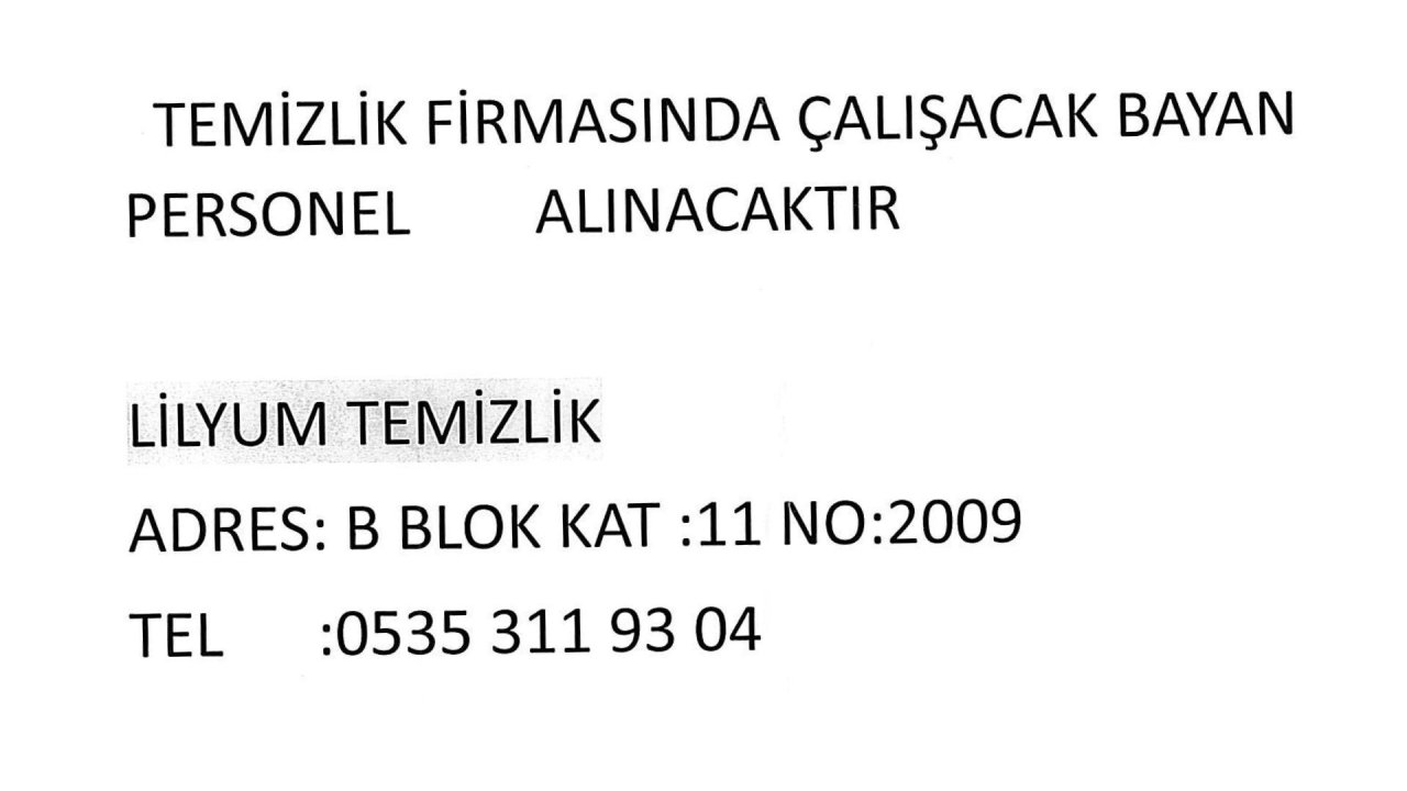 TEMİZLİK FİRMASINDA ÇALIŞACAK BAYAN PERSONEL ARANIYOR