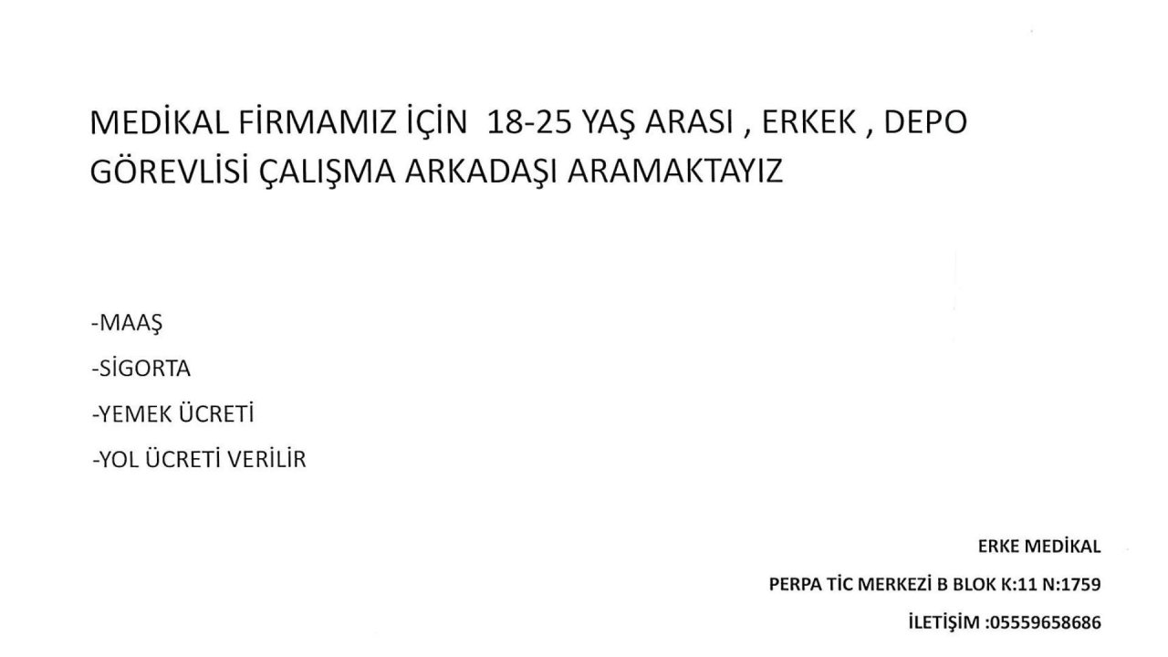 ERKEK, DEPO GÖREVLİSİ ARANIYOR