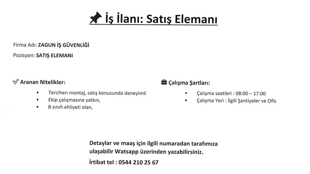 Detay25–35 yaş aralığında, şirket içi telefon–kargo trafiğini yönetebilecek, ofis düzeni ve misafir karşılama süreçlerinde deneyimli; MS Office programlarına hâkim, diksiyonu düzgün, B1 seviyesinde İngilizce bilen, takım çalışmasına uyumlu, analitik ve çözüm odaklı kadın ofis asistanı aranmaktadır.