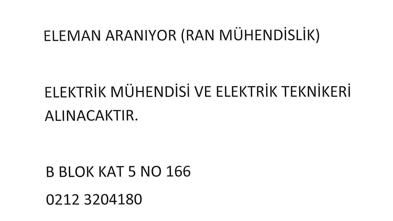 ELEKTRİK TEKNİSYENİ ARANIYOR