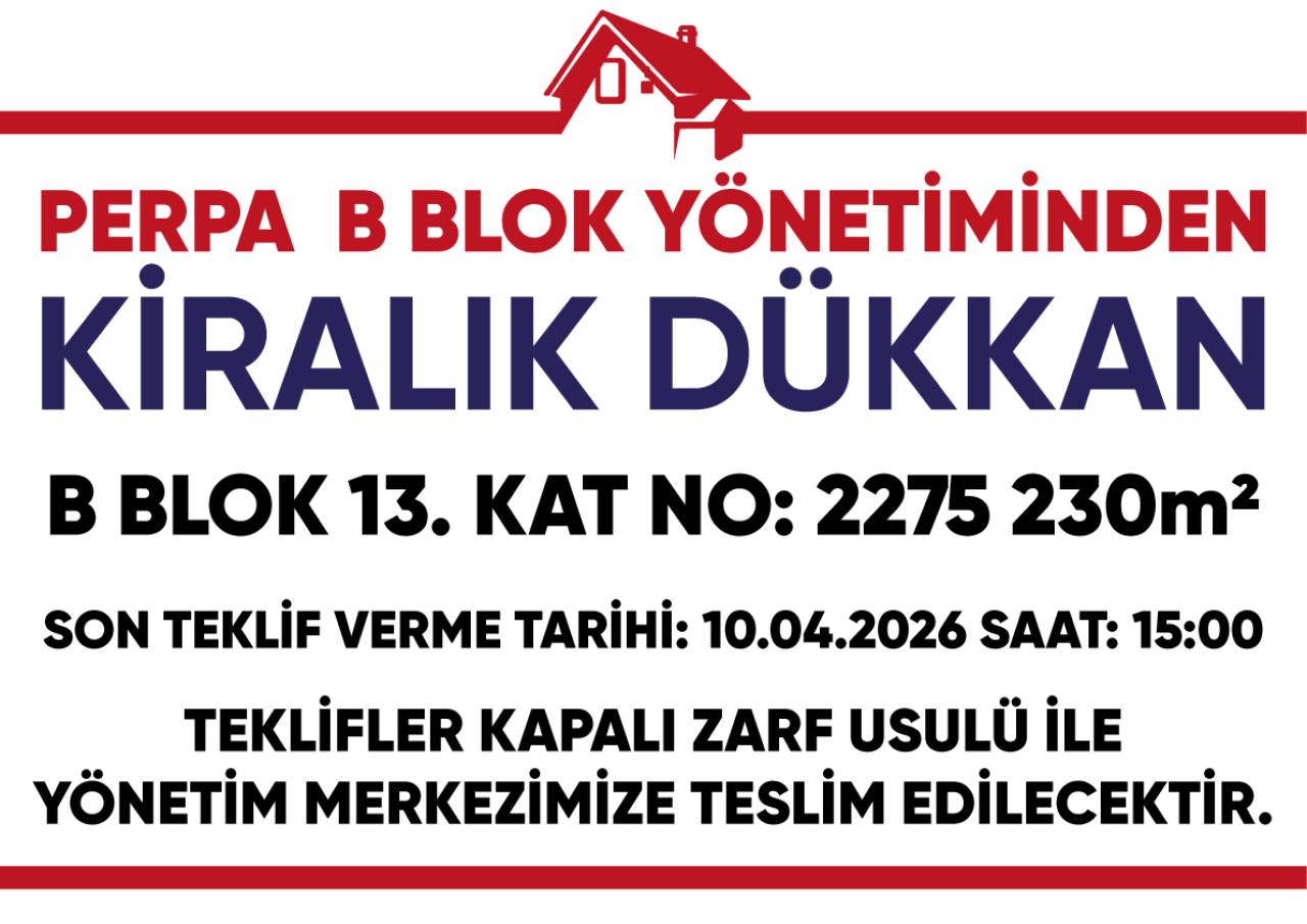 DetayPerpa Ticaret Merkezi 5. ve 8. katlardaki ana giriş kapılarının yenilenmesi için ihaleye çıkılmıştır.