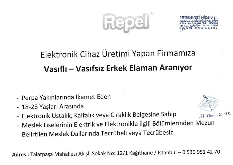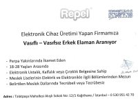 ELEKTRONİK CİHAZ ÜRETİMİ YAPAN FİRMAMIZA VASIFLI - VASIFSIZ ERKEK ELEMAN ARANIYOR