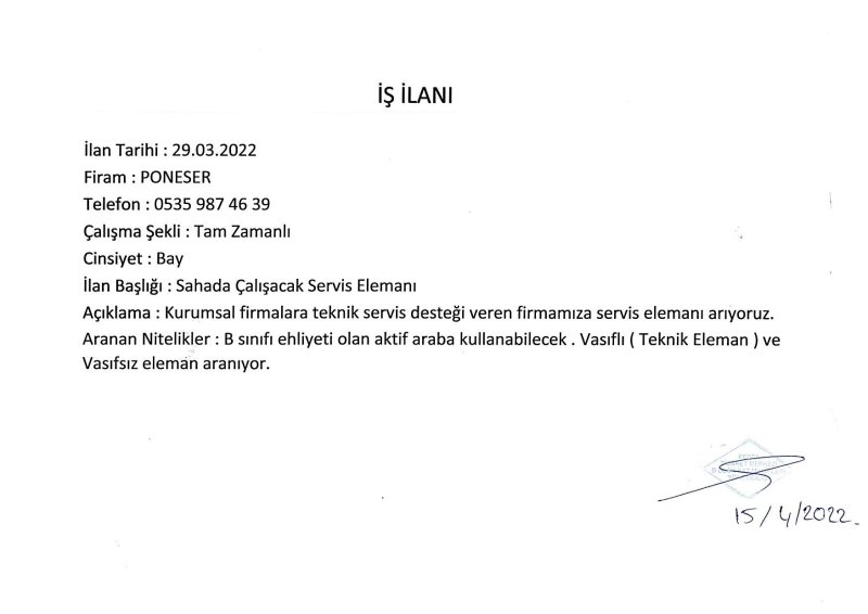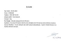 VASIFLI (TEKNİK ELEMAN) VE VASIFSIZ ELEMAN ARANIYOR.