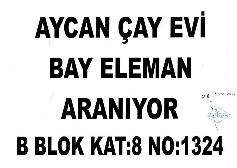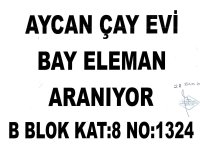 AYCAN ÇAY EVİ BAY ELEMAN ARANIYOR. ADRES: PERPA TİCARET MERKEZİ B BLOK KAT: 8 NO: 1324