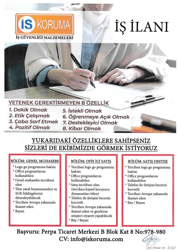 • SATIŞ TECRÜBESİ OLAN (TERCİHEN KİŞİSEL KORUYUCU DONANIMLARI BİLEN)