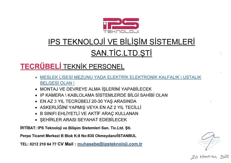 • IP KAMERA/KABLOLAMA SİSTEMLERDE BİLGİ SAHİBİ OLAN