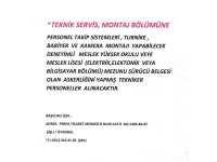 - DENEYİMLİ, TEKNİK SERVİS MONTAJ BÖLÜMÜNDE ÇALIŞABİLECEK