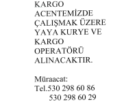 KARGO ACENTEMİZDE ÇALIŞMAK ÜZERE YAYA KURYE VE KARGO OPERATÖRÜ ALINACAKTIR.