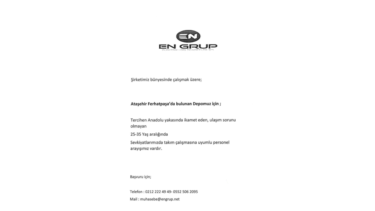 SEVKİYATLARIMIZDA TAKIM ÇALIŞMASINA UYUMLU PERSONEL ARIYORUZ.