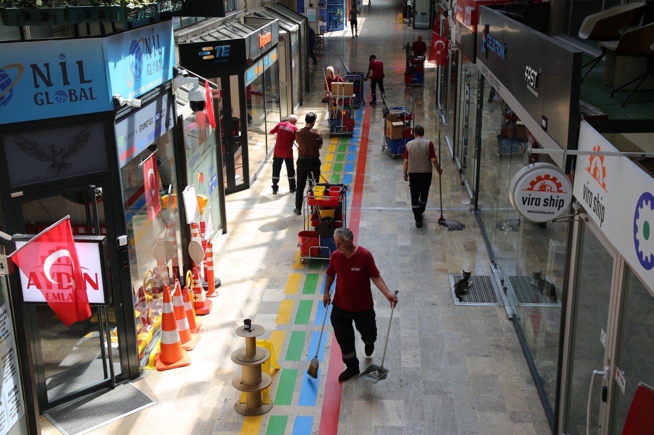 Perpa Ticaret Merkezi B Blok’ta, ortak alanlardaki işgallerin sona ermesiyle birlikte kapsamlı bir temizlik çalışması başlatıldı. 13. kattan başlayan çalışmalar, en alt kata kadar devam etti. 20 kişilik temizlik ekibinin yanı sıra otomatik temizlik araçlarının da yer aldığı çalışmalarda, ana ve ara koridorlar ile avlular detaylı şekilde temizlendi. Detaylı temizlik işleri düzenli olarak devam edecek.