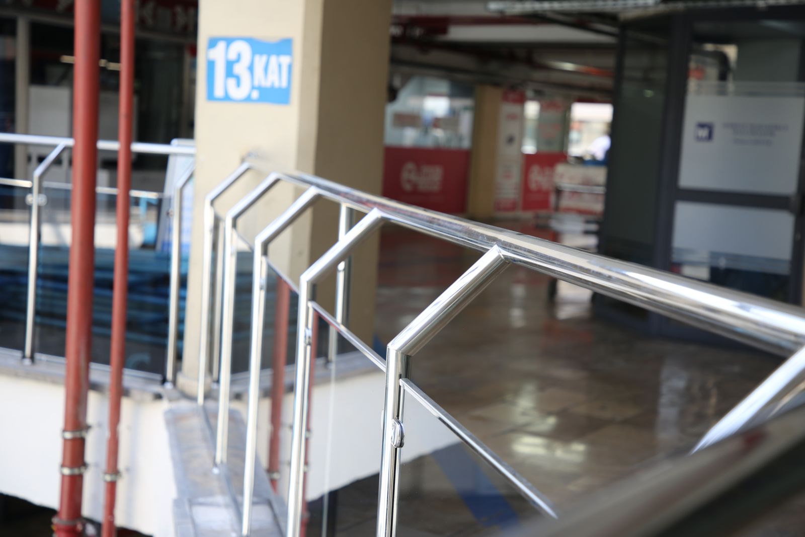 PERPA B Blok’ta önceki dönemlerde yapımı tamamlanmamış olan iş güvenliğine uygun korkuluk yapım işini bitirebilmek için çalışmalar devam ediyor. Mevcut demir boru korkuluklar sökülüp yerlerine 304 kalite paslanmaz borudan ve lamine camdan korkuluk yapılıyor. Eski olan yaklaşık 3 bin metre korkuluk yenileriyle değiştiriliyor. 13. kat korkuluk yapımı tamamlandı. Çalışmalar 6, 9 ve 12. katta devam ediyor. Perpa B Blok Yönetimi sorumluluğunda bulunan tüm alanlarda modernleşme projelerini hız kesmeden sürdürüyor.