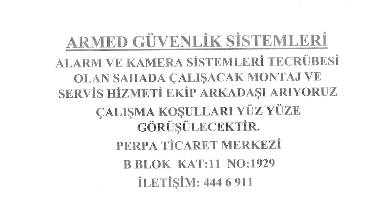 ARMED Güvenlik Sistemleri, alarm ve kamera sistemleri alanında tecrübeli, sahada aktif olarak görev alabilecek montaj ve servis hizmeti personeli arıyor.