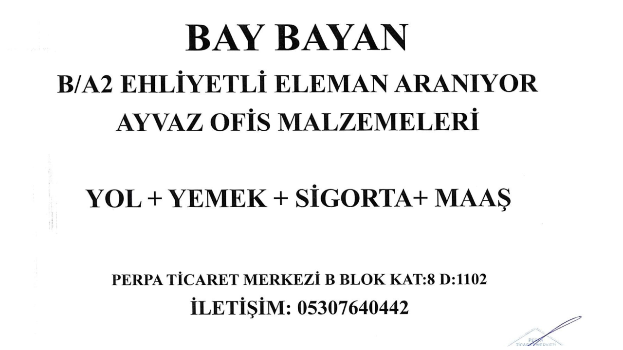 Ayvaz Ofis Malzemeleri’nde görev alacak personel; ofis malzemelerinin sevkiyat ve teslimatını yapacak, gerektiğinde depo düzenine yardımcı olacak ve günlük lojistik operasyonlarını yürütecektir. Firma yol, yemek, sigorta ve maaş imkânı sunmaktadır.