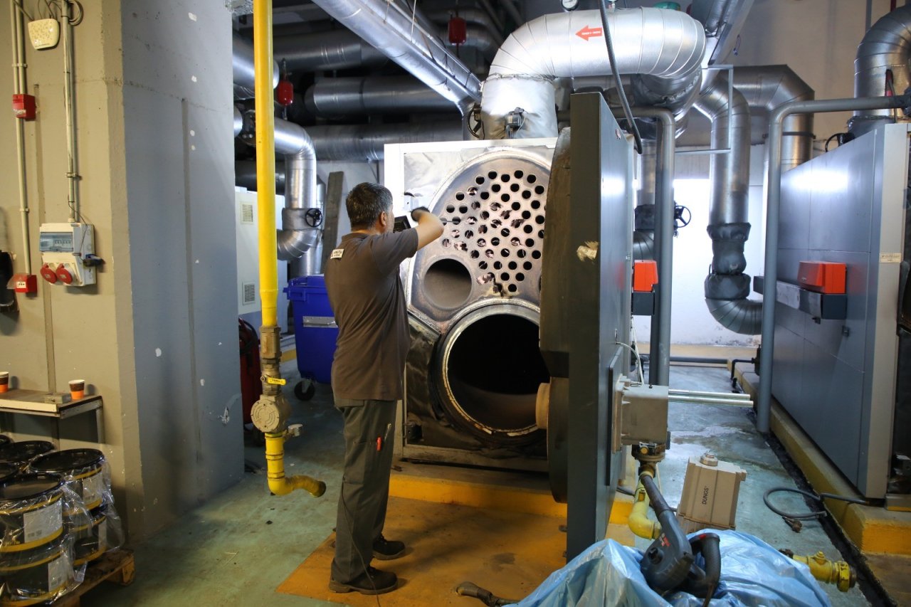 Bakım çalışmaları Viessmann yetkili firma tarafından yapıldı. Kazan içlerinde biriken kurum temizlendi, ekonomik ömrünü tamamlayan parçalar değiştirildi ve tüm aksam kontrol edildi. Bakım sayesinde yakıt tasarrufu sağlanması, sistem verimliliğinin artırılması ve olası arızaların önüne geçilmesi hedefleniyor.