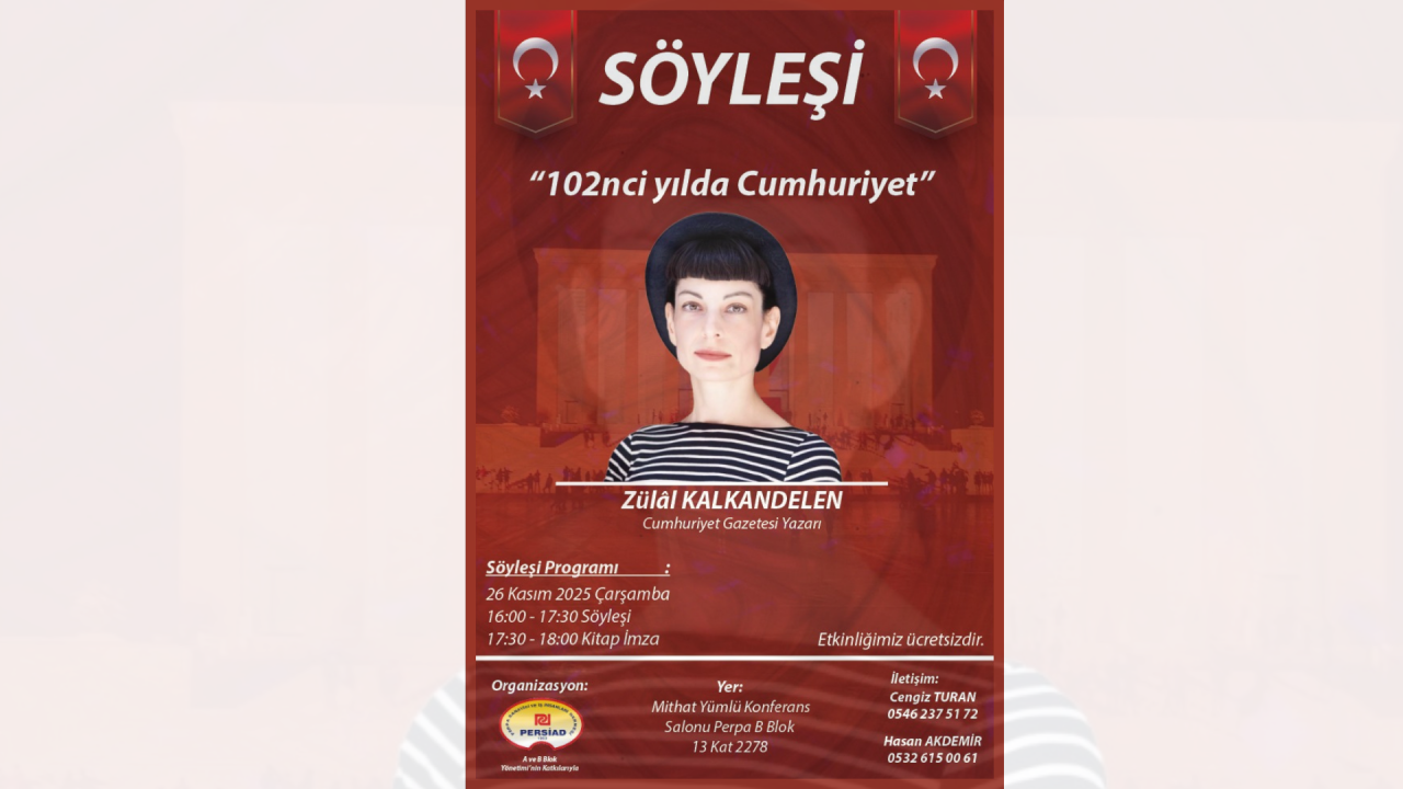 26 Kasım 2025 Çarşamba Saat: 16:00'da PERPA B Blok Mithat Yümlü Toplantı Salonunda "102. Yılda Cumhuriyet" konulu söyleşi gerçekleşti. Ardından kitap imza etkinliği düzenlendi.