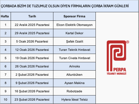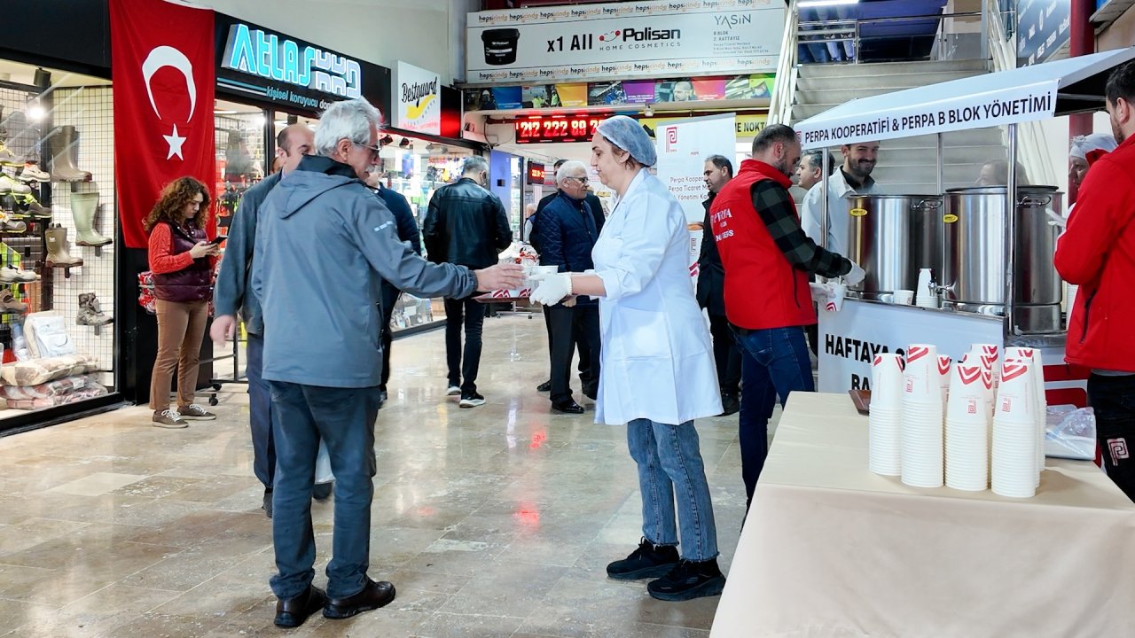 Ayrıca, çorba dağıtımına sponsor olmak isteyen esnaf ve firmalar adına da ikram yapılabildiği, bu sayede PERPA esnafı arasında birlik, beraberlik ve dayanışmanın güçlendirilmesinin amaçlandığı vurgulandı.