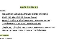 DİKSİYONU DÜZGÜN, PREZENTABL ELEMAN ALINACAKTIR PERPA YA YAKIN YERDE OTURAN TERCİHİMİZDİR.