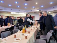 Kutlama kapsamında başkan ve yönetim kurulu üyeleri, personelle tek tek tokalaşarak yeni yıllarını tebrik etti.