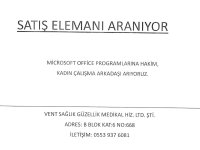 SATIŞ ELEMANI ARANIYOR MİCROSOFT OFFICE PROGRAMLARINA HAKİM, KADIN ÇALIŞMA ARKADAŞI ARIYORUZ.