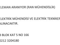 RAN MÜHENDİSLİK ELEKTRİK MÜHENDİSİ VE ELEKTRİK TEKNİKERİ ARANIYOR