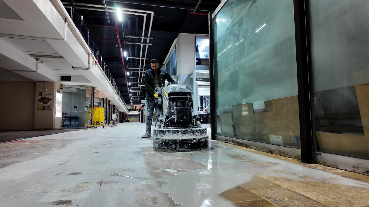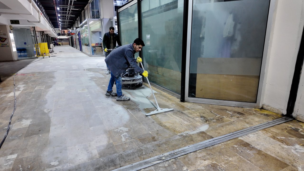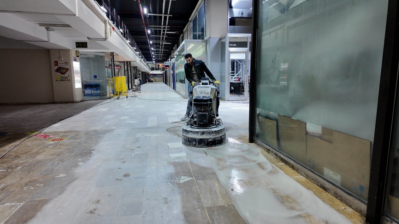 PERPA Ticaret Merkezi B Blok'ta ortak alanların yenilenmesine yönelik çalışmalar aralıksız devam ediyor. 5. katta mermer silim işlemlerinde son aşamaya gelindi
