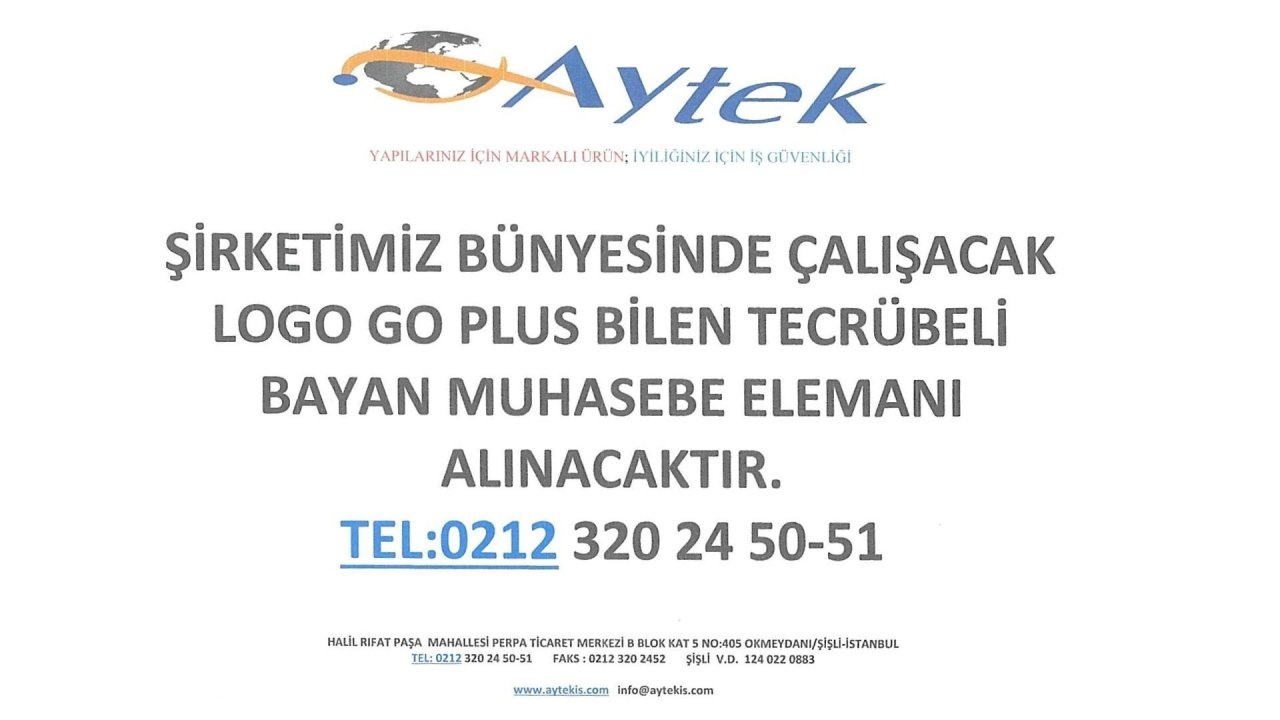 ŞİRKETİMİZ BÜNYESİNDE ÇALIŞACAK LOGO GO PLUS BİLEN TECRÜBELİ