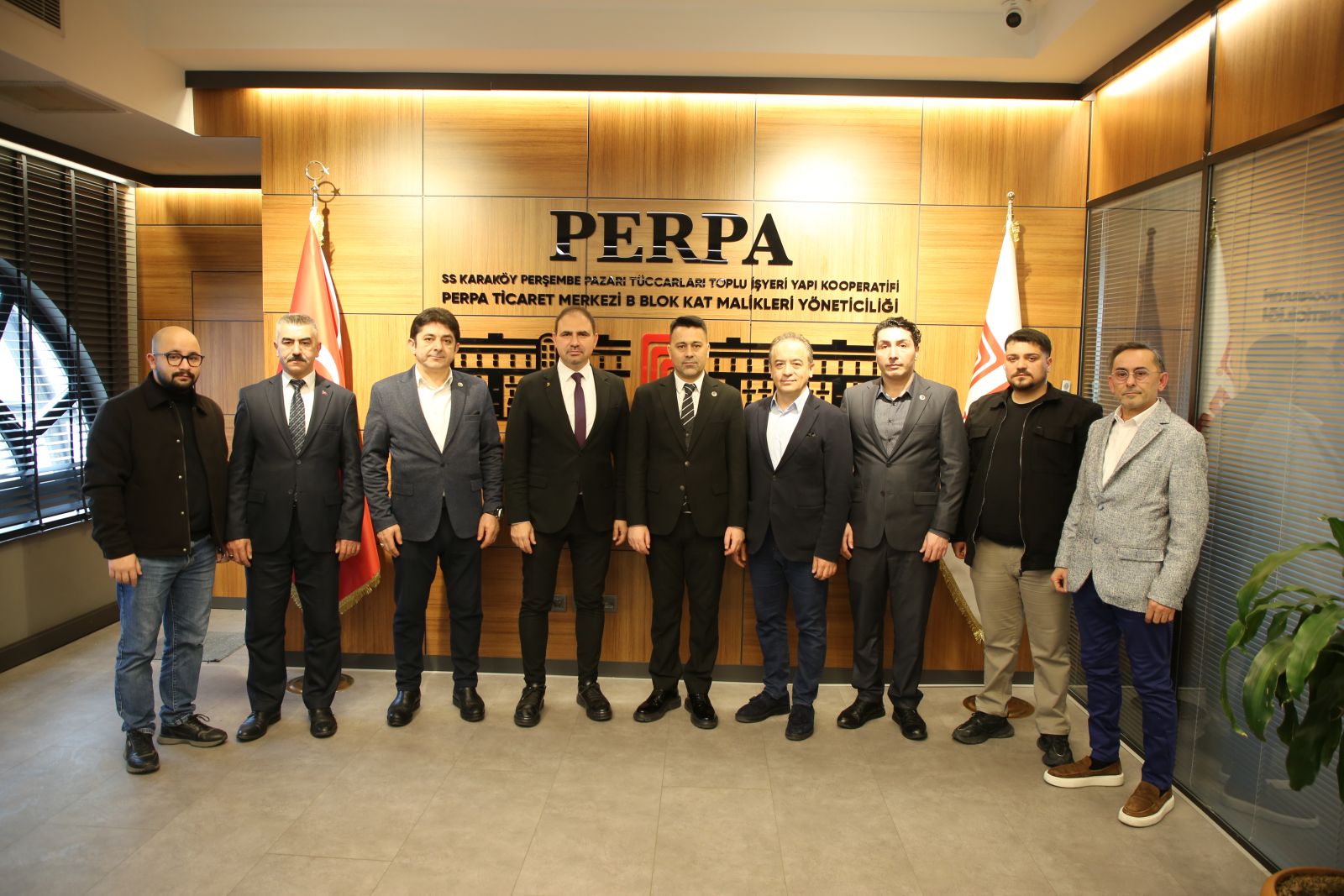 Gerçekleşen ziyarette PERPA Yönetim Kurulu Üyeleri İhsan Kartal, Mehmet Sıddık Özkan ve Mesut Şen de yer aldı. Samimi bir ortamda gerçekleşen görüşmede, PERPA Ticaret Merkezi’nin mevcut çalışmaları ve bölgeye yönelik projeler hakkında fikir alışverişinde bulunuldu.