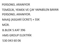 TEMİZLİK, YEMEK VE ÇAY YAPABİLEN BAYAN PERSONEL ARANIYOR.