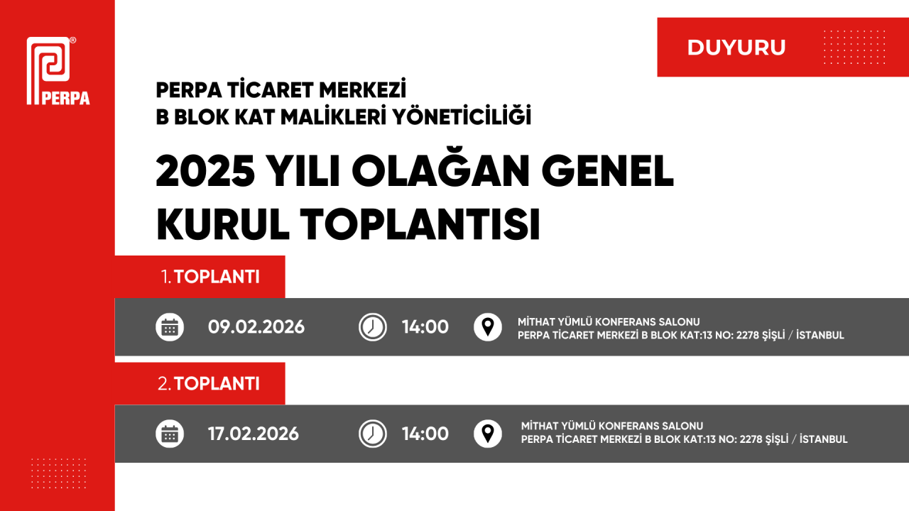 PERPA B BLOK KAT MALİKLERİ 2025 YILI OLAĞAN GENEL KURUL TOPLANTISI