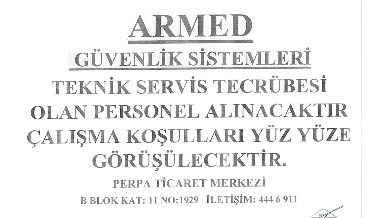 DetayArmed Güvenlik Sistemleri, teknik servis tecrübesine sahip personel arıyor. Güvenlik sistemlerinin bakım ve onarımında deneyimli, sahada aktif çalışabilecek, sorumluluk sahibi adaylar tercih edilmektedir. Çalışma koşulları ve diğer detaylar, yüz yüze görüşmede paylaşılacaktır.