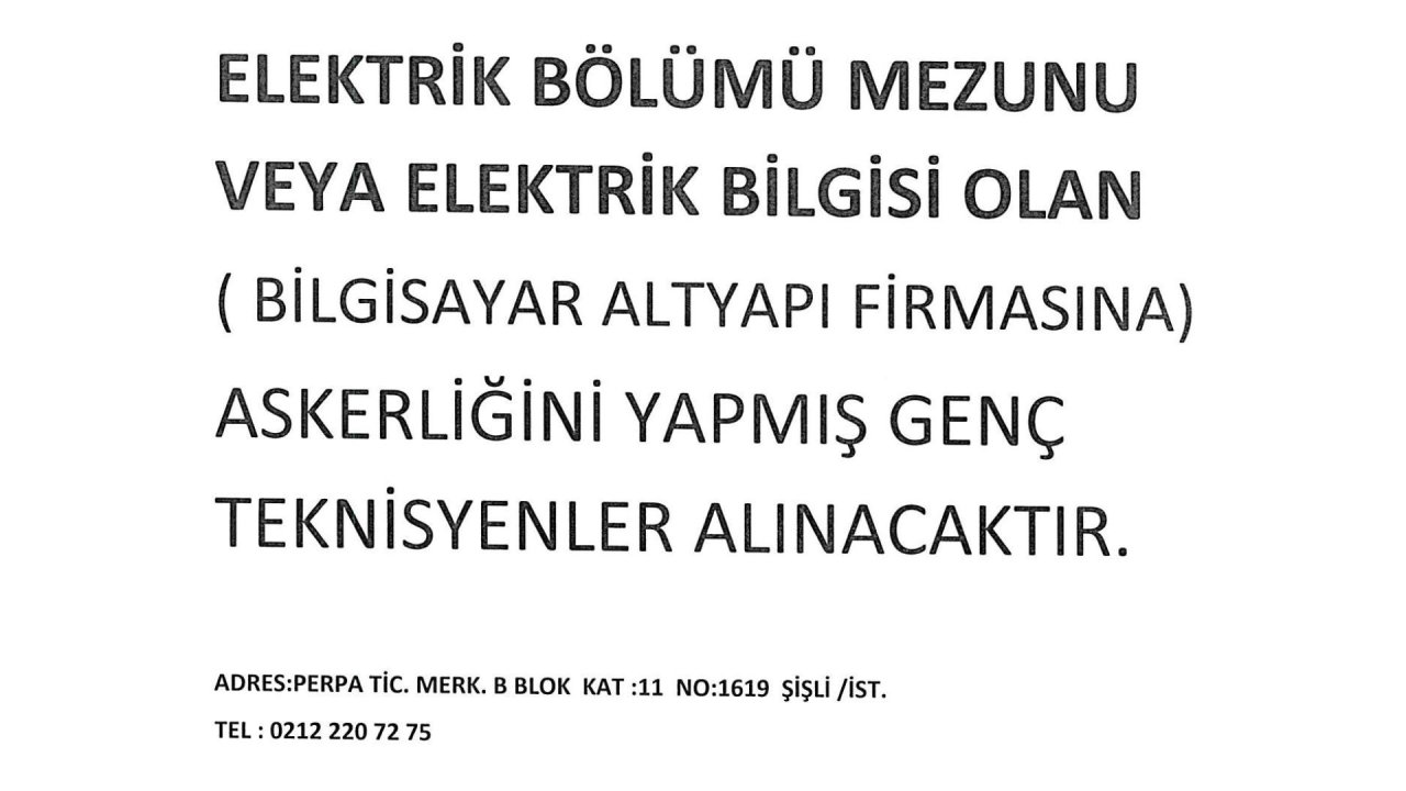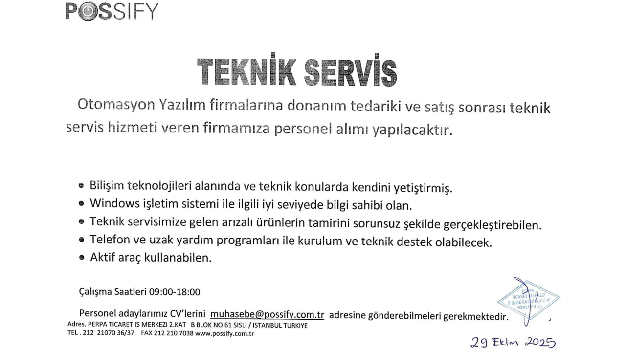 DetayBT donanım/teknik konularında kendini yetiştirmiş, temel elektronik ve PC bileşenlerine hâkim Windows kurulum, sürücü/ görüntü (imaj), lisans ve temel ağ ayarları (IP, paylaşımlar, RDP) konularında iyi seviye Teknik servise gelen arıza tespiti, tamir, bakım, test ve raporlama süreçlerini yürütebilen Telefon ve uzak yardım (TeamViewer/AnyDesk vb.) kurulumları yapıp destek verebilen Müşteri iletişimi güçlü, çözüm odaklı, ekip çalışmasına uygun Aktif araç kullanabilen; gerektiğinde saha ziyaretlerine uyumlu (tercihen B sınıfı)