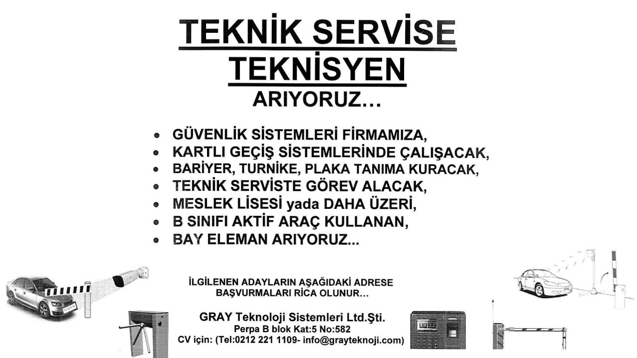 DetayElektronik güvenlik sistemlerinde montaj, bakım, arıza/servis, programlama ve kullanıcı eğitimi konularına hâkim Saha kurulumlarında kablolama, devreye alma, test ve arıza tespiti yapabilen Müşteri sahasında iletişimi güçlü, çözüm ve sonuç odaklı çalışabilen Takım çalışmasına uyumlu, iş disiplinine sahip, raporlama yapabilen (Tercihen) CCTV, IP kamera, NVR/DVR, alarm, kartlı geçiş, turnike, bariyer, yangın algılama sistemlerinde deneyim (Tercihen) MYO/meslek lisesi Elektrik-Elektronik/BT mezunu (Tercihen) B sınıfı ehliyet ve aktif araç kullanımı, şehir içi saha çalışmalarına uygunluk