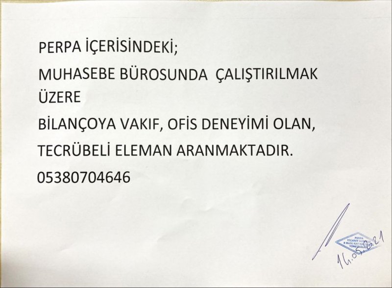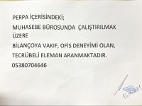 BİLANÇOYA VAKIF,OFİS DENEYİMİ OLAN, TECRÜBELİ ELEMAN ARANMAKTADIR.