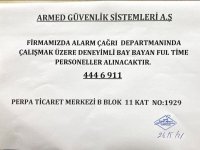 FİRMAMIZDA ALARM ÇAĞRI DEPARTMANINDA ÇALIŞMAK ÜZERE DENEYİMLİ BAY-BAYAN FULL TİME PERSONEL ALACAKTIR.