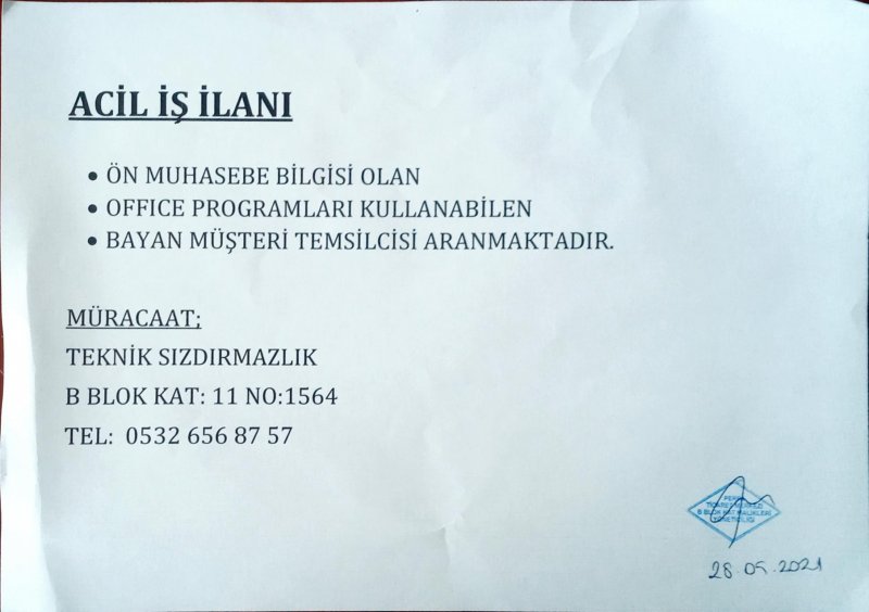 ACİL İŞ İLANI
