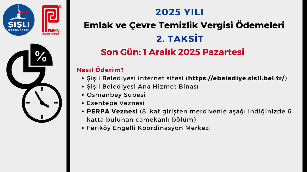 2025 yılına ait emlak ve çevre temizlik vergisinin 2. taksit ödemeleri başladı.