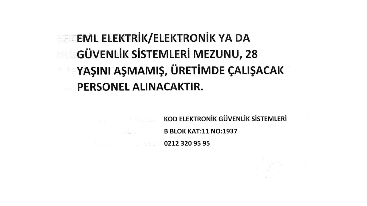 - EML ELEKTRİK/ELEKTRONİK YA DA GÜVENLİK SİSTEMLERİ ALANINDA MEZUN