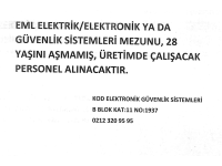- EML ELEKTRİK/ELEKTRONİK YA DA GÜVENLİK SİSTEMLERİ ALANINDA MEZUN
