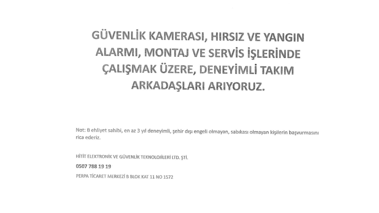 B EHLİYET SAHİBİ, EN AZ 3 YIL DENEYİMLİ ŞEHİR DIŞI ENGELİ OLMAYAN, SABIKASI OLMAYAN KİŞİLERİN BAŞVURMASINI RİCA EDERİZ.