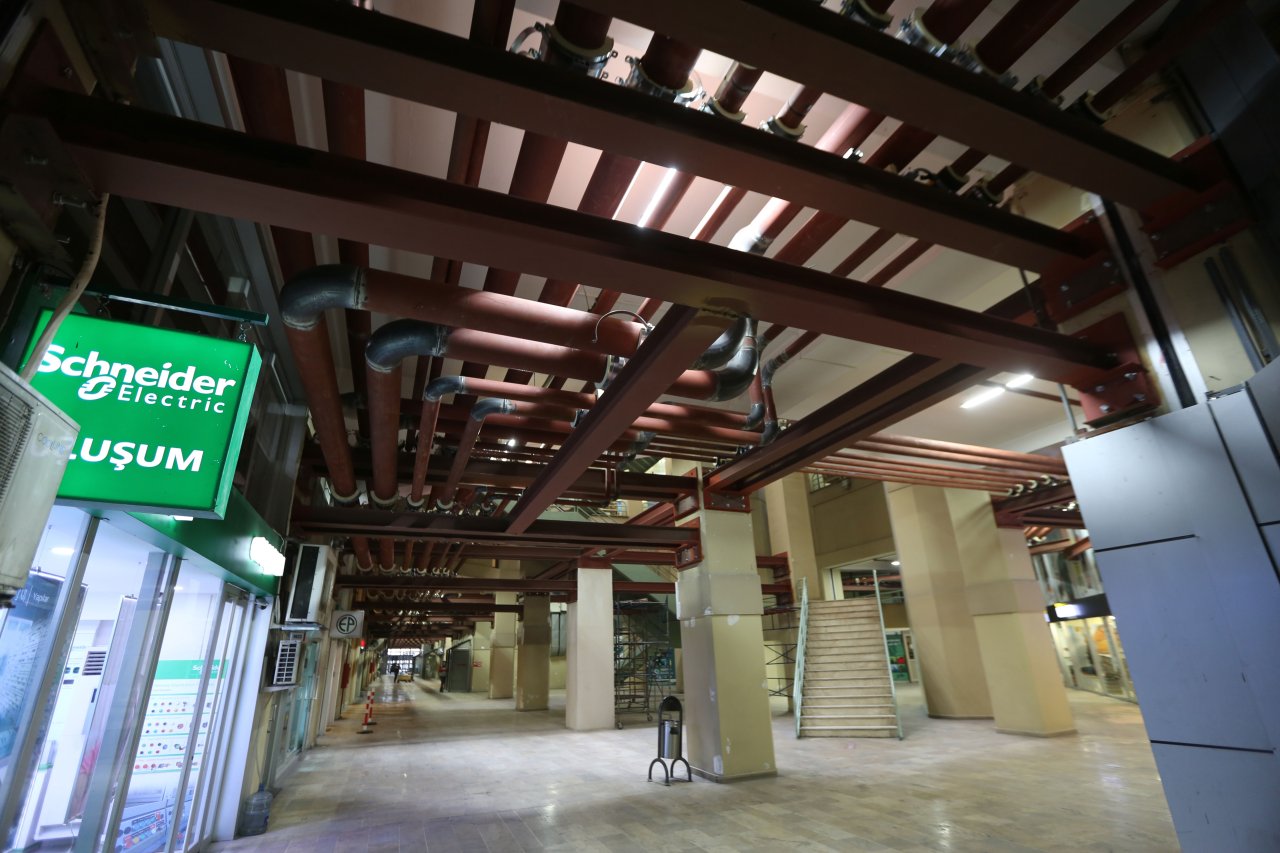 - 4. kat mavi avludaki ada dükkanların ısıtma - soğutma iç tesisatının borulama işi başladı ve devam ediyor.