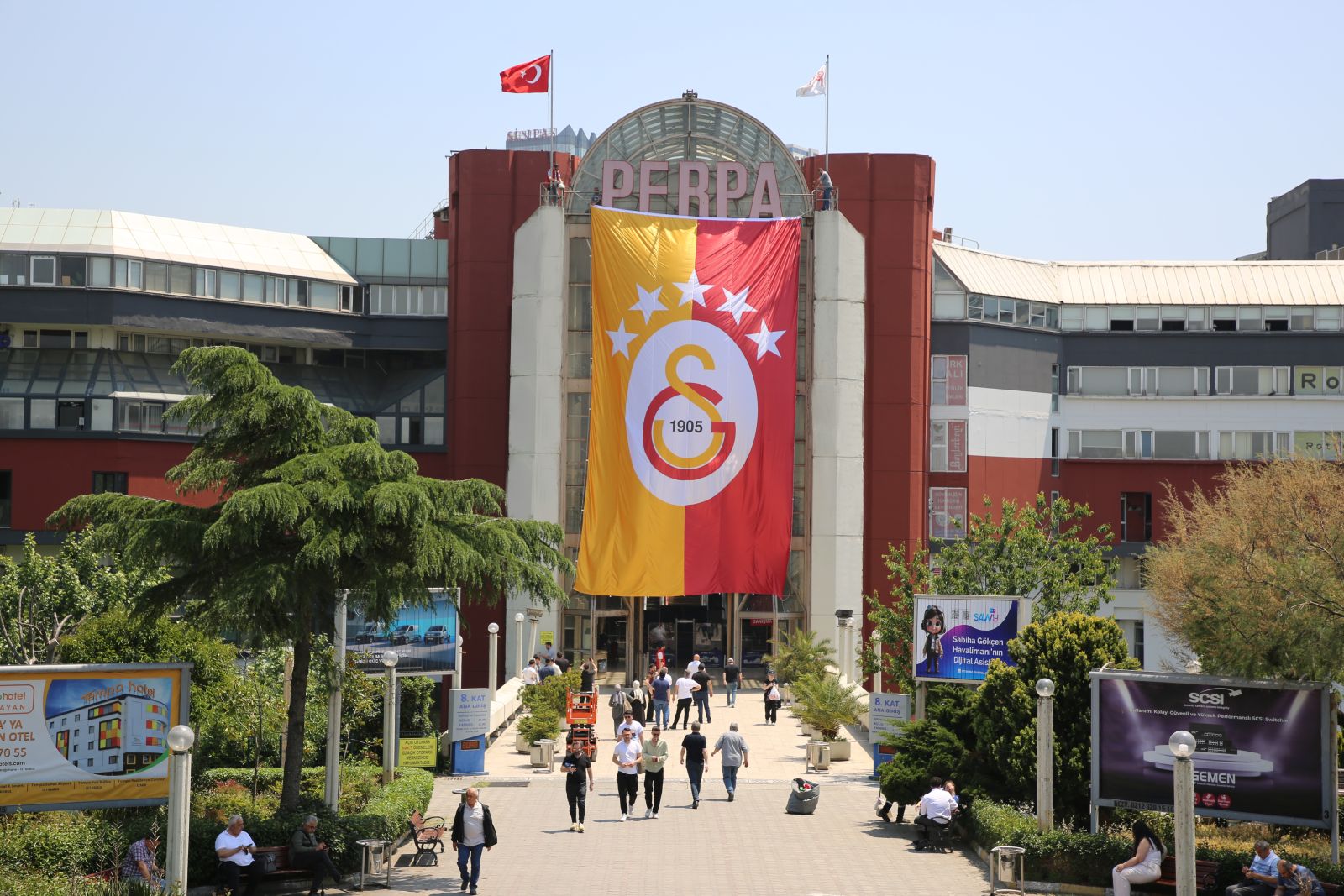 Galatasaray’ın şampiyonluğunu kutlamak için PERPA Ticaret Merkezi ana kapısına Perpalıların katılımıyla Galatasaray bayrağı asıldı.
