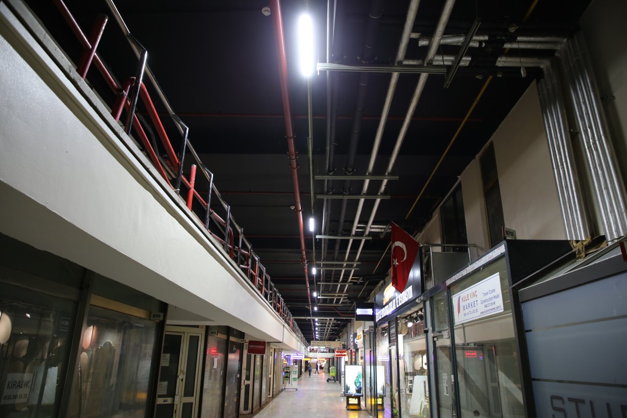 Özel yapım 250 adet 75 watt led armatür alındı. Enerji tasarrufu için tercih edilen aydınlatmaların kurulumu 5. ve 8. katta tamamlandı. Diğer katlarda çalışmalar devam ediyor. Yangın merdivenlerini aydınlatmak için de 144 adet led aplik siparişi verildi.