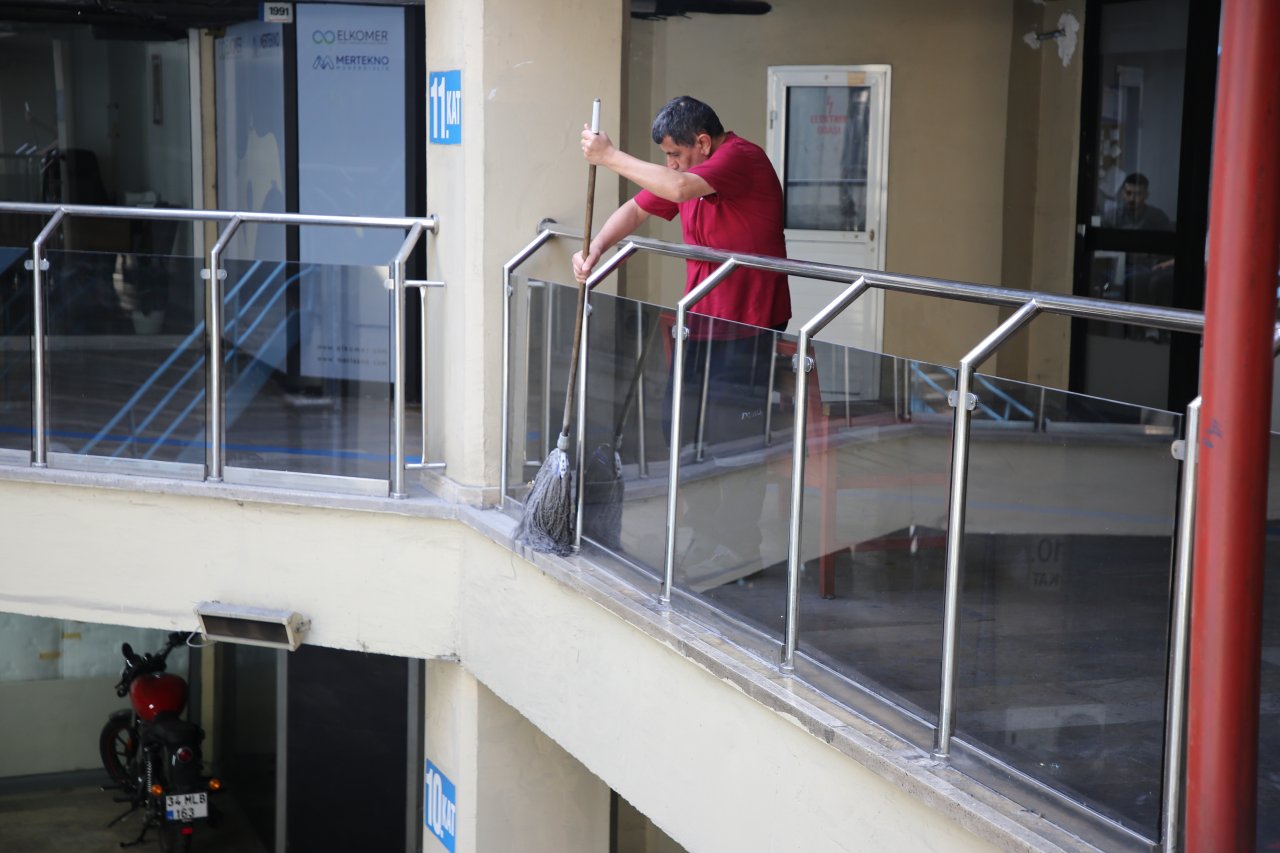 Perpa Ticaret Merkezi B Blok’ta, ortak alanlardaki işgallerin sona ermesiyle birlikte kapsamlı bir temizlik çalışması başlatıldı. 13. kattan başlayan çalışmalar, en alt kata kadar devam etti. 20 kişilik temizlik ekibinin yanı sıra otomatik temizlik araçlarının da yer aldığı çalışmalarda, ana ve ara koridorlar ile avlular detaylı şekilde temizlendi. Detaylı temizlik işleri düzenli olarak devam edecek.