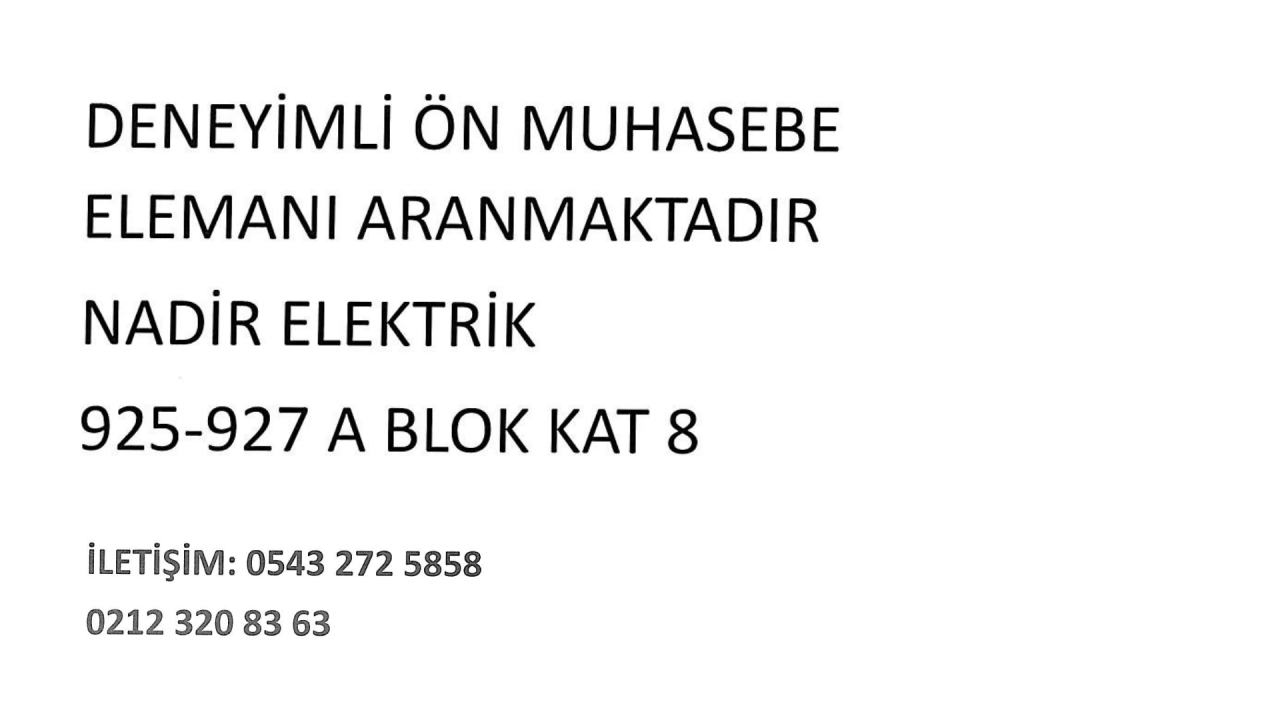 DENEYİMLİ ÖN MUHASEBE ELEMANI ARANMAKTADIR.