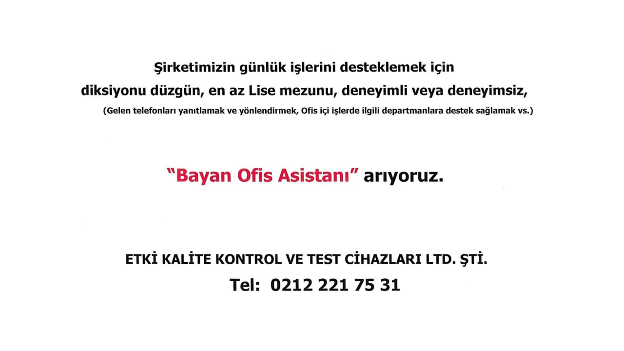 BAYAN OFİS ASİSTANI ARIYORUZ.