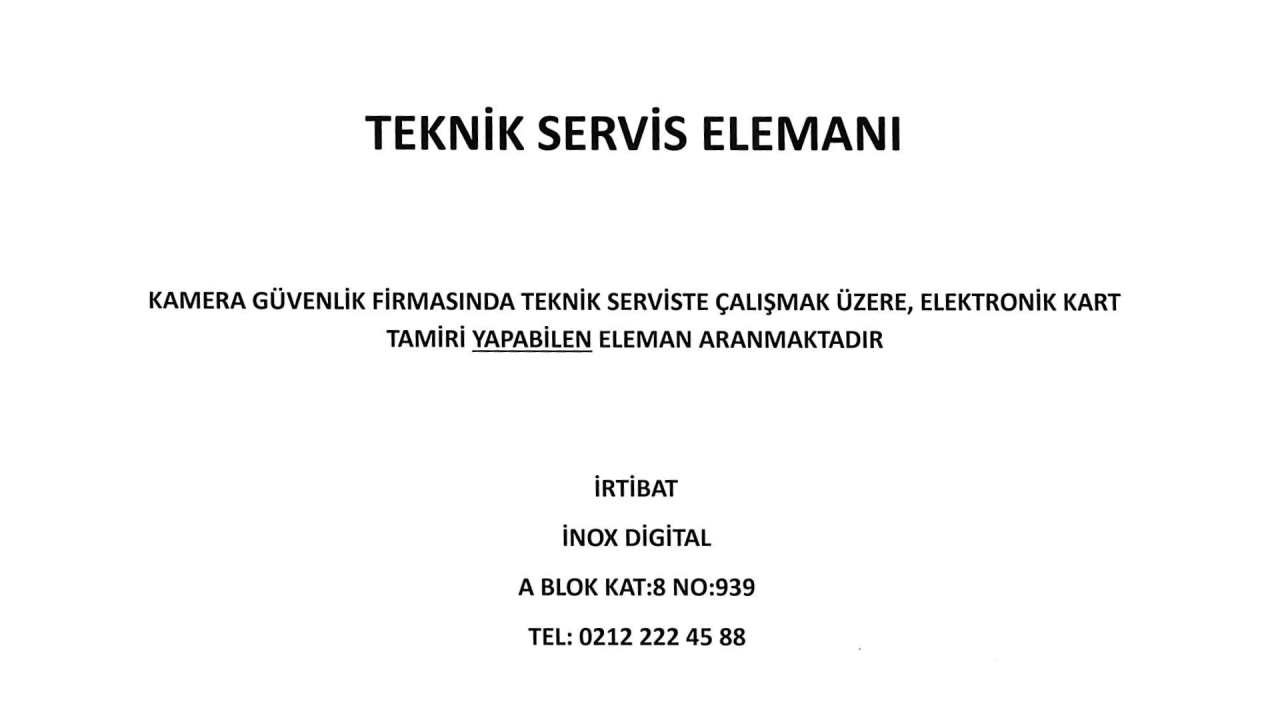 Kamera güvenlik firmasında, teknik serviste çalışmak üzere elektronik kart tamiri yapabilen eleman aranmaktadır.