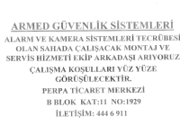 ARMED Güvenlik Sistemleri, alarm ve kamera sistemleri alanında tecrübeli, sahada aktif olarak görev alabilecek montaj ve servis hizmeti personeli arıyor.