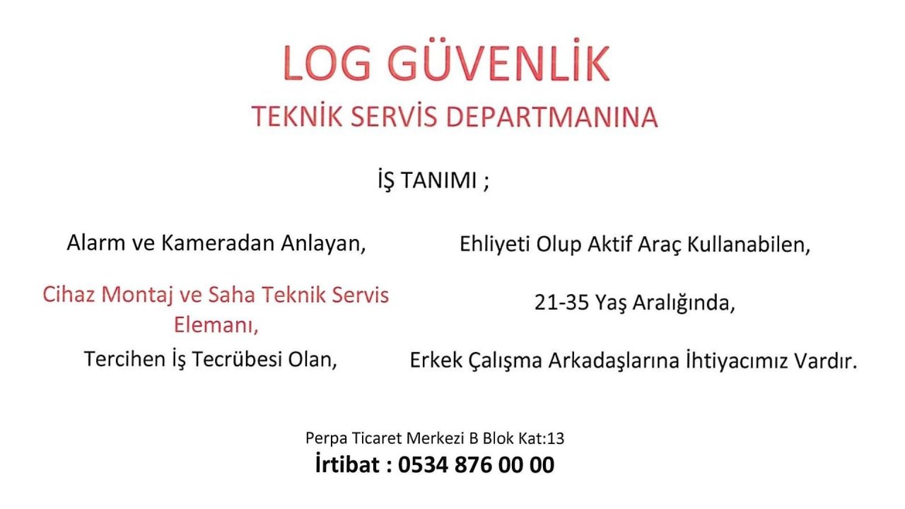 - Cihaz Montaj ve Saha Teknik Servis Elemanı,